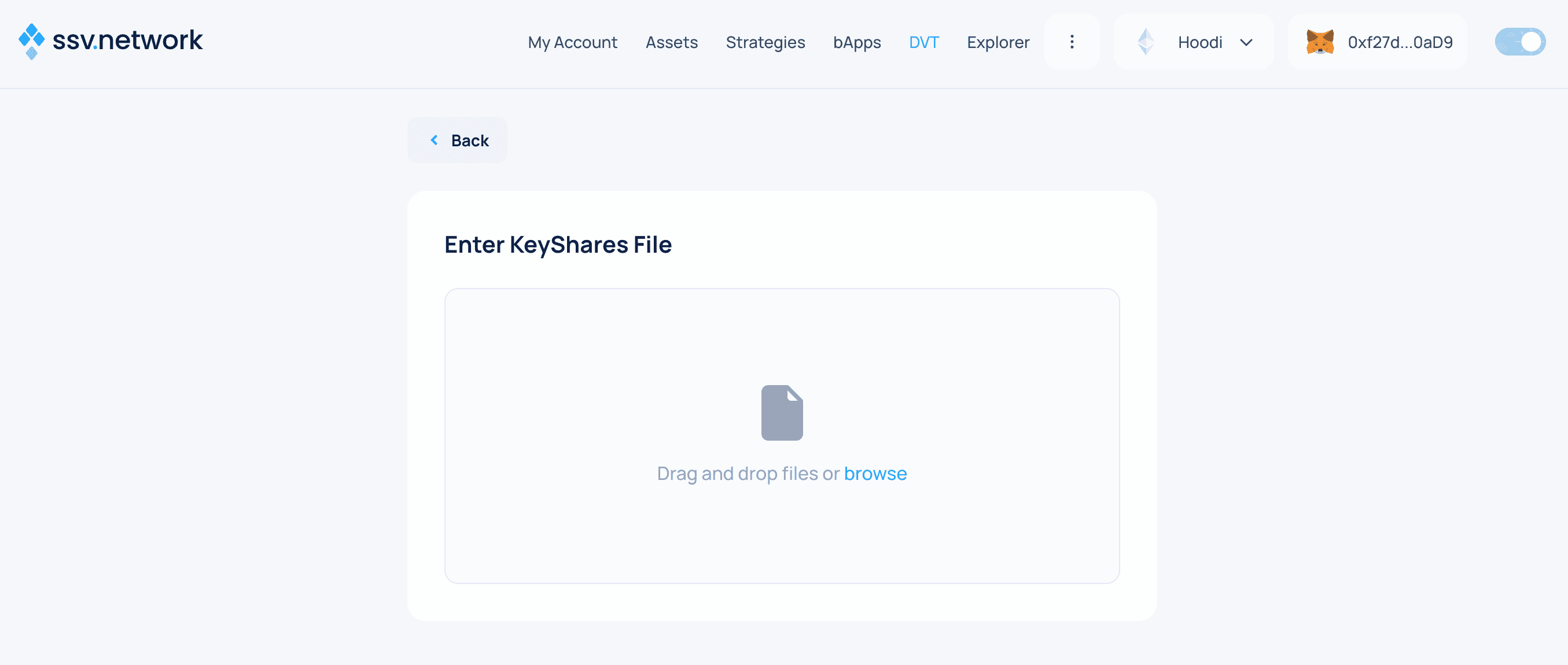 - Upload the generated KeyShares File